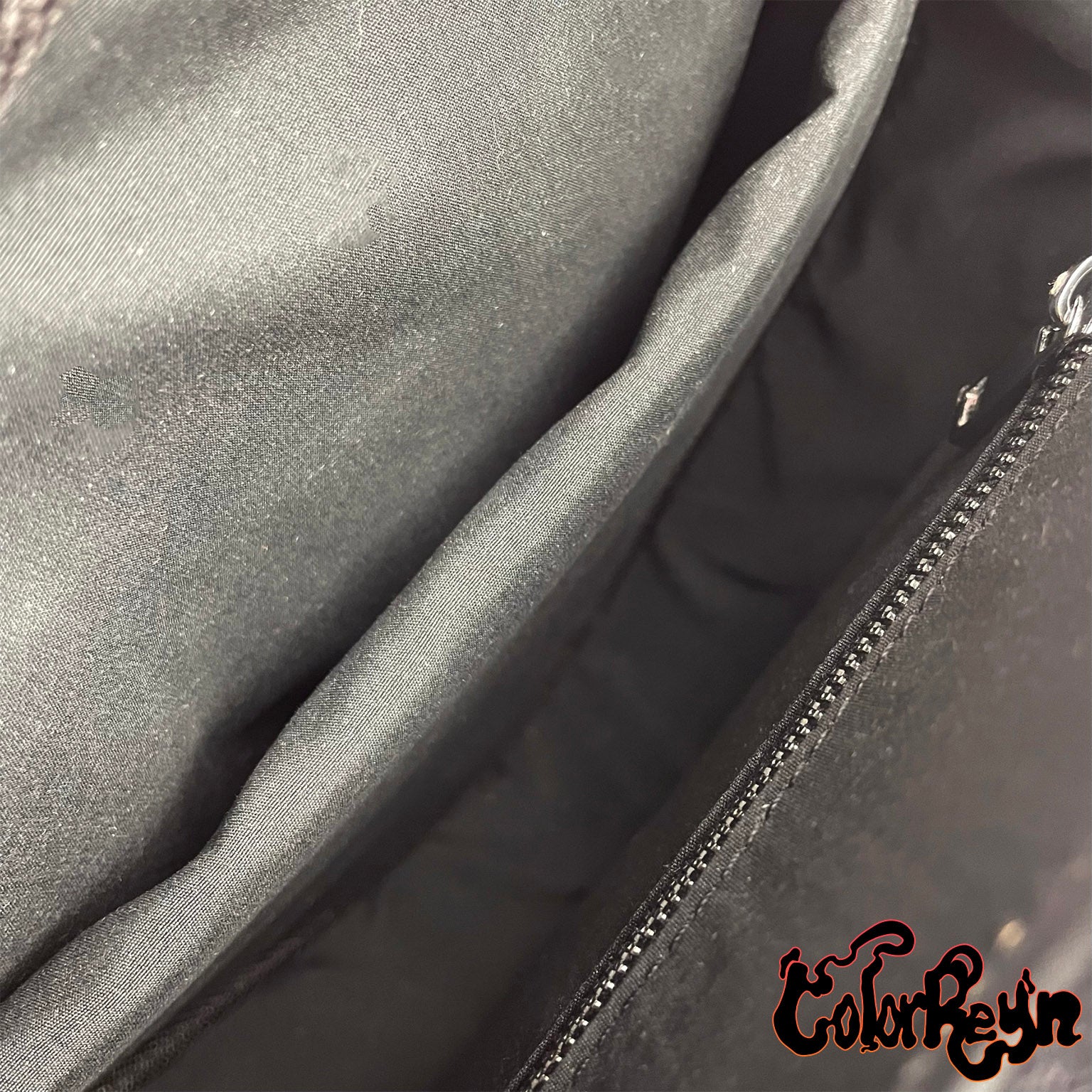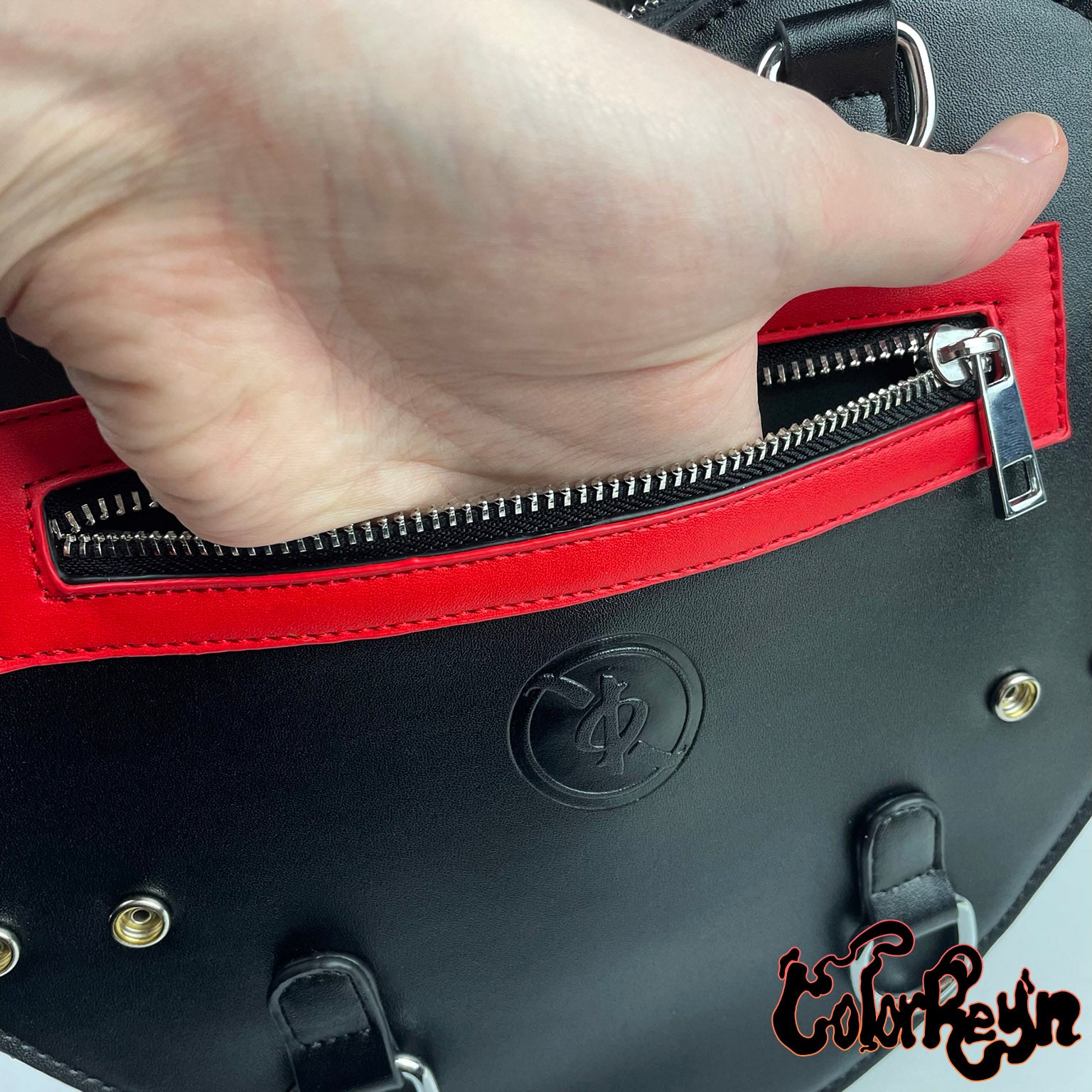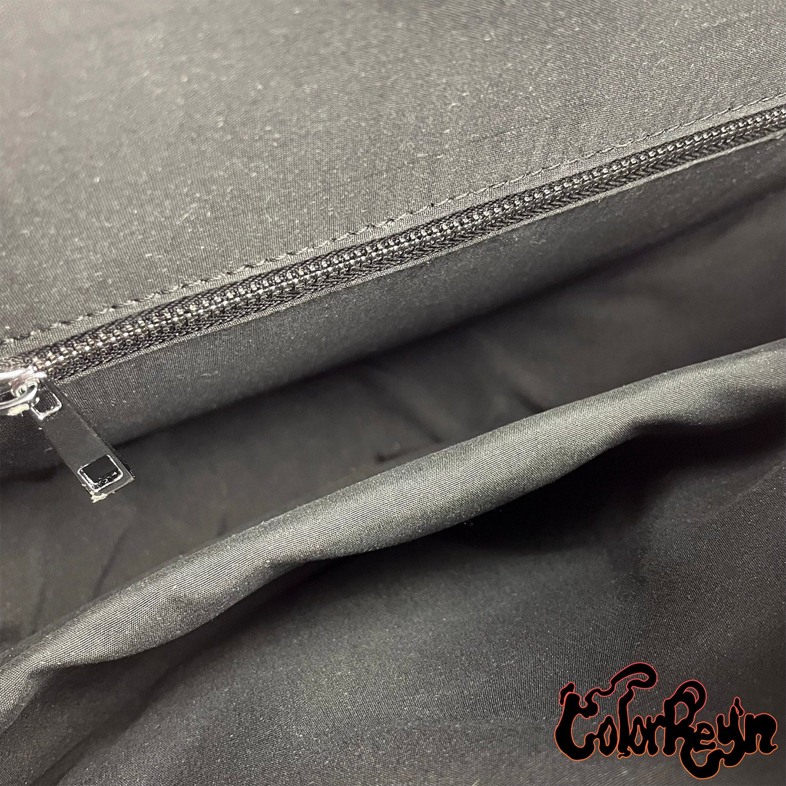 An ita-bag is a handbag, backpack or other kind of bag covered in badges, buttons, figurines and other merchandise pertaining to anime and manga fandom.This coffin-shaped Ita bag was designed with love, and is also a safe place where your enamel pins can rest in peace! Perfect for Halloween or any occasion where you want to look a little spooky.